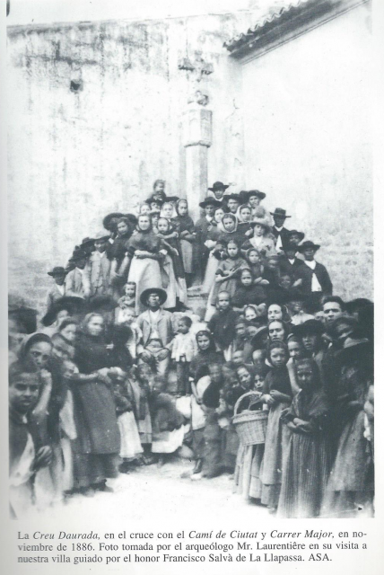 Aquesta creu apareix documentada al 1515 com la creu del Cami de Ciutat quan el batle convocà als homes armats de la vila davant aquesta creu: Ara ojats que mana lo batle del Senyor Rrey a tots los qui son alegits per anar a la armade contre los perfidos moros que en continent viste la present sien ab lurs armes a le Creu del Camí de Ciutat al canto de la Vila .... L’any 1522, la creu torna apareixer documentada, però amb el nom de la creu Daurada del camí de Ciutat, per motius de pesta ja que era el lloc ideal per les possibles entrades de gent que venia de Ciutat amb aquesta malaltia ; a la sessió de consell del 14 de setembre de 1522 es feia patent: nosaltros tenim guardas en la Creu Deurada del camí de Ciutat al cantó de la Vila .....